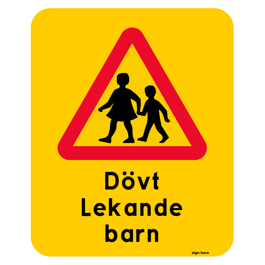 Dövt lekande barn gul varningsskylt